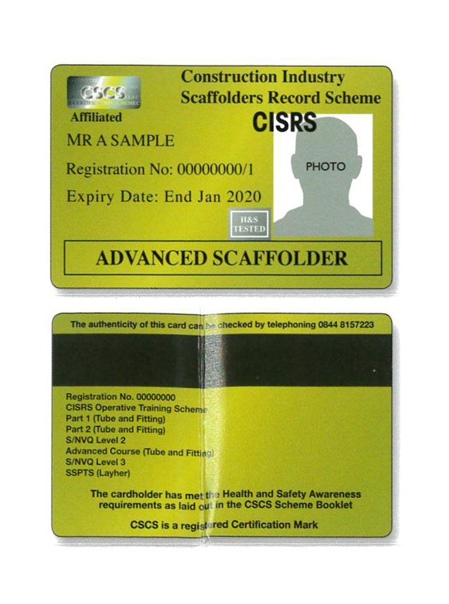 Operatives must be in possession of a CISRS Basic Scaffolder (Tube & Fitting) Card for at least 12 months before they can attend an Advanced Scaffolder Training Course.